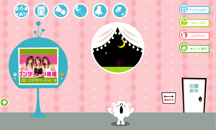 さて、色々ニューアイテムが売ってましたが目を引いたのがレース付きの丸窓と黒地に灰色のクローバーの壁紙。