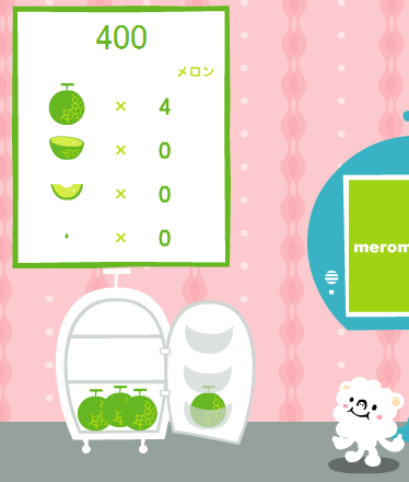 1(たね1こ)・10(メロンひときれ)・50(メロンはんぶん)とたぶん100(メロンまるごと1個)
