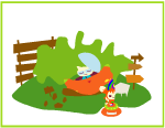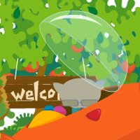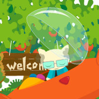 あ、デンボンだ!ミューミューは???どうやら『ハーボット』のキャラクターデンボンは宇宙船(?)を修理中のようす。