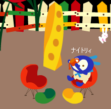 アヒル村にて。。。上のゆえりんが座っているイスがナイトリィの足元のやつです。