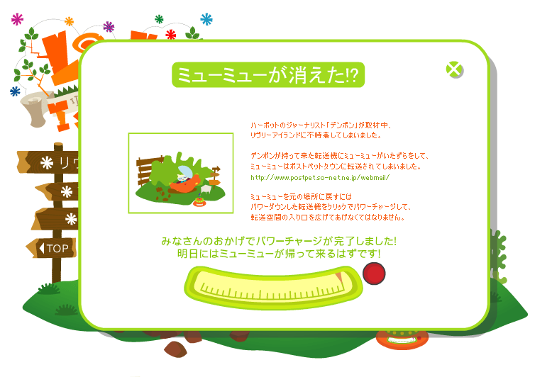 リヴリーアイランドのトップページでのミューミュー救出クリック大作戦(?)はどうやら終わったようですね。