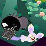 放浪してるときに、満腹度が10%以下のリヴにはミミズをあげてます。